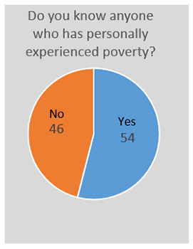 More than half of all Americans say they personally know someone who has experienced poverty. Sixty percent of African-Americans say they know someone who has been poor compared with 54 percent of whites. People aged 65 and older are less likely to say they know someone who has been poor than younger adults.